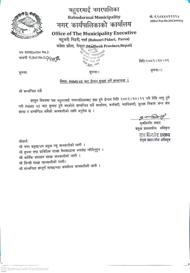 आज मिती २०८२ साल अषाढ १० गते मंगलबारका दिन यस बहुदरमाई नगरपालिका बहुअरी, पिडरी पर्साको आ.ब. २०८२/०८३ को निती तथा कार्यक्रम सार्बजनिकिकरण कार्यक्रम एक समारोहका बिच सम्पन्न भएको छ। निती तथा कार्यक्रम नगर उप-प्रमुख श्री सुस्मा कुमारी कुशवाहा ज्यु बाट प्रस्तु