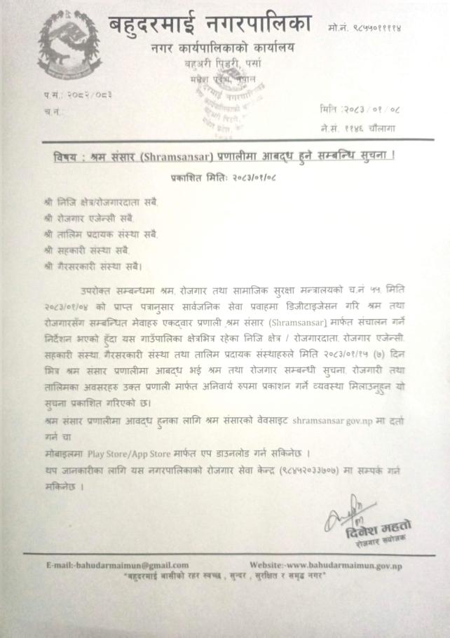 » श्रमसंसार प्रणालीमा आबद्ध हुने सम्बन्धी सुचना।