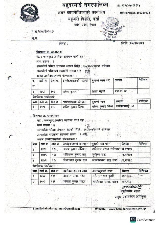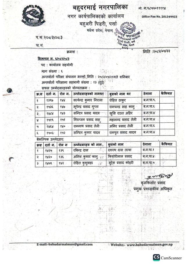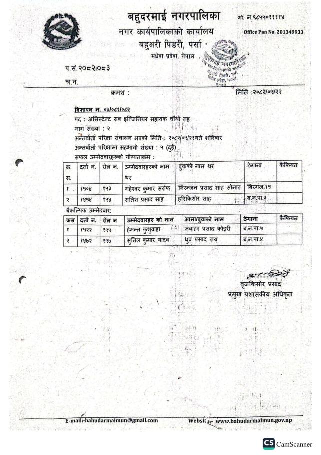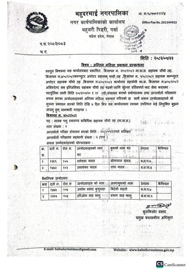 अन्तिम नतिजा प्रकाशन सम्बन्धमा।