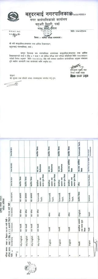 बार्षिक परिक्षा सम्बन्धमा।